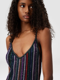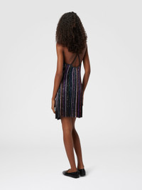 This viscose-blend mini dress stands out with its bold, luminous design. Thin straps crisscross at the back, while the herringbone striped knit comes alive with lame threads and beads that enhance its geometric pattern. The play of textures and reflections gives movement and sharp definition to the silhouette—a look of refined modernity. MORE DETAILS - Mini dress - Crossed back straps - Herringbone stripe knit - Viscose blend - Lurex threads and sequins Composition: EXTERNAL:65%Rayon, 30%Polyamide, 5%Metal Fiber; LINING : 88%Polyester, 12%Elastane Care instructions: Dry cleaning in tetrachloroethene - mild process ; Ironing maximum temperature 110°C - without steam ; Wash in net bag ; Dry inside out ; Iron inside out ; Do not tumble dry ; Dry flat ; Do not wash ; Do not bleach Made in: Italy Product ID DS25WG1SBK01C3SM9T4