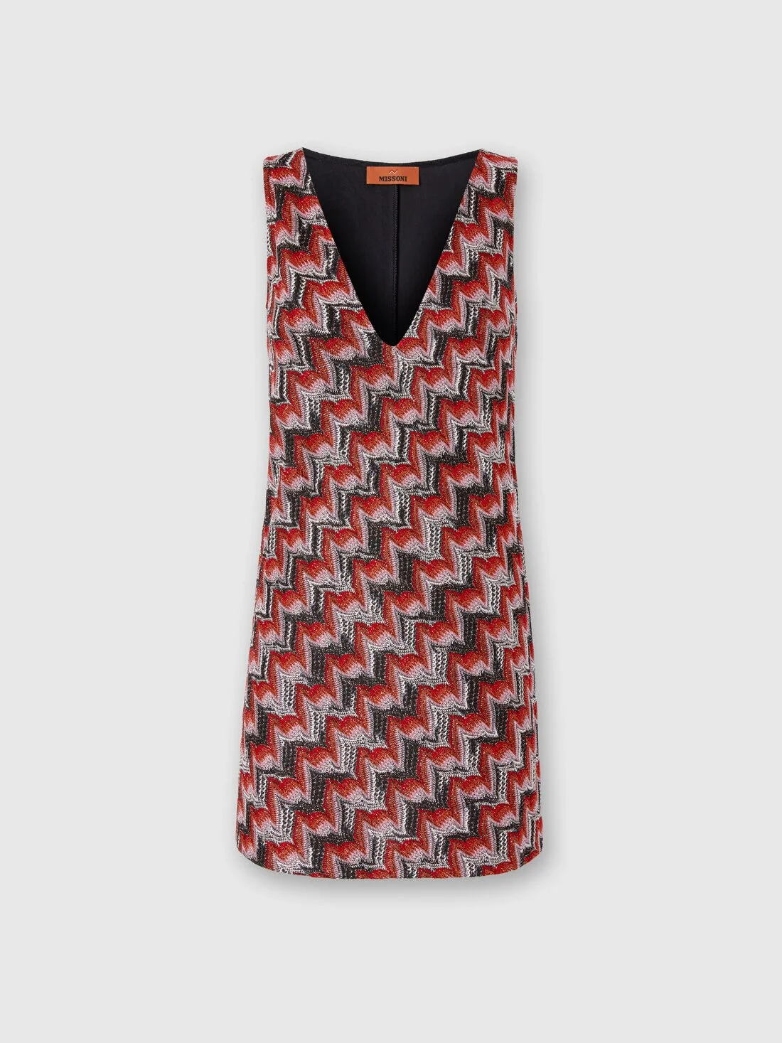 A piece that blends the delicacy of lace with the brilliance of lame, this sleeveless women’s mini dress in raschel lace embraces the silhouette with elegance. A deep V-neckline enhances its sensuality, while lame threads catch the light with every movement, balancing brilliance and sophistication. MORE DETAILS - Mini dress - Sleeveless - V-neckline - Raschel knit - Lace-effect motif - Lurex threads - Viscose blend Composition: EXTERNAL:89%Rayon, 11%Metal Fiber; INTERNAL REINFORCEMENT:100%Polyester Care instructions: Dry cleaning in tetrachloroethene - mild process ; Wash max 30°C - Very mild process ; Dry flat ; Do not tumble dry ; Steam iron only ; Do not iron ; Do not bleach Made in: Italy Product ID DS25WG0UBR012PS4175