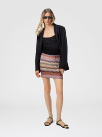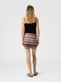 A women’s mini skirt that celebrates the iconic Missoni zigzag through refined raschel lace craftsmanship. Made from a viscose blend with lame threads, it combines brilliance and lightness in a lively, feminine design. MORE DETAILS - Mini skirt - Raschel knit with zig zag pattern - Viscose blend with lame threads Composition: EXTERNAL:89%Rayon, 6%Metal Fiber, 5%Polyamide; INTERNAL REINFORCEMENT:100%Polyester Care instructions: Wash max 30°C - Mild process ; Dry cleaning in tetrachloroethene - mild process ; Dry flat ; Steam iron only ; Do not tumble dry ; Do not iron ; Do not bleach Made in: Italy Product ID DS25WH0HBR012LSM9QY