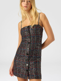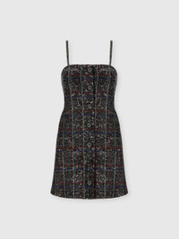 This women’s mini dress with front buttons blends contemporary spirit with sophisticated craftsmanship. Made on a Caperdoni loom, it features an elegant check pattern enriched with lame threads and sequins, delivering a precious brightness and rich texture. Its short, structured design and radiant details make it perfect for special occasions where elegance and personality merge with style. MORE DETAILS - Strapless mini dress with front buttons - Caperdoni framework weaving - Check pattern - Viscose blend with lame filaments and sequins Composition: EXTERNAL:78%Rayon, 11%Polyamide, 6%Metal Fiber, 5%Polyester; INTERNAL REINFORCEMENT:100%Polyester; LINING : 82%Polyester, 18%Elastane Care instructions: Hand wash ; Do not tumble dry ; Dry flat ; Steam iron only ; do not soak ; Do not dry clean ; Do not iron ; Do not bleach Made in: Italy Product ID DS25WG2YBC005VS91R4