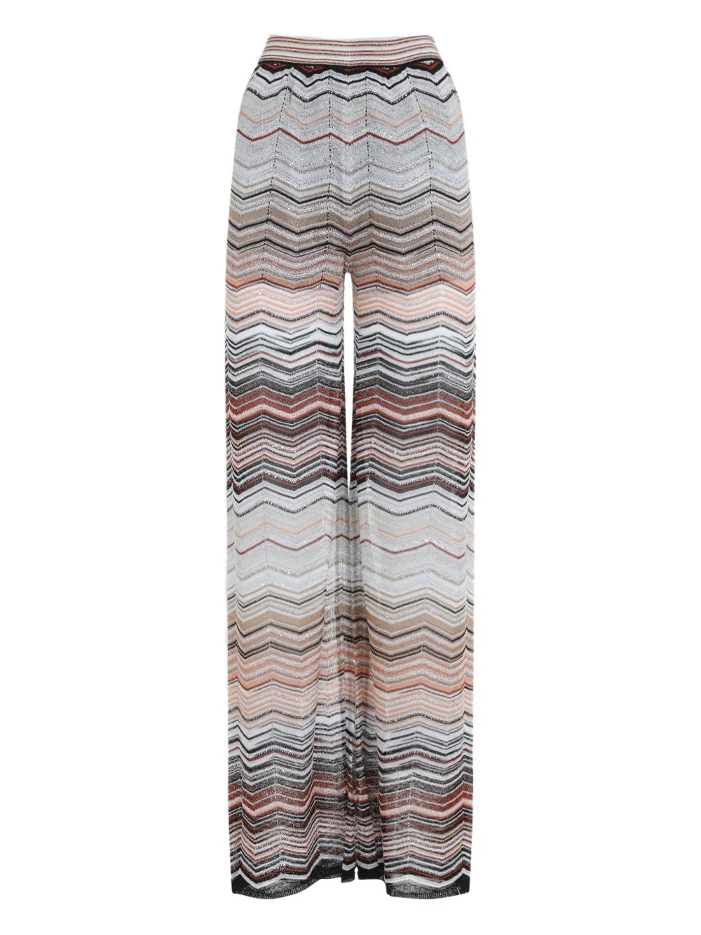 patterned trousers Highlights - Red and beige-tones - Zigzag pattern - Wide leg - Elasticated waistband - Flared hem - The item you receive may differ slightly from the item photographed. this is due to the artisanal nature with which all missoni products are constructed. Made in Italy Composition Viscose 76%, Metallised Fibres 13%, Polyamide 11% Washing instructions Read Manufacturer Guidelines