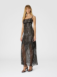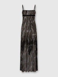 A sleeveless long dress that blends sophistication with movement. The jacquard knit in Missoni’s signature zigzag motif features a pleated effect for added fluidity, while lame threads add radiant luminosity. A perfect mix of tradition and modern design. MORE DETAILS - Long dress - Sleeveless - Zig zag motif - Pleated - Viscose blend - Lurex threads Composition: EXTERNAL:82%Rayon, 9%Metal Fiber, 7%Polyester, 1%Elastane, 1%Polyamide Care instructions: Dry cleaning in tetrachloroethene - mild process ; Ironing maximum temperature 110°C - without steam ; Iron inside out ; Dry inside out ; Do not tumble dry ; Dry flat ; Do not wash ; Do not bleach Made in: Italy Product ID DS25WG0VBK01CHSM9T2