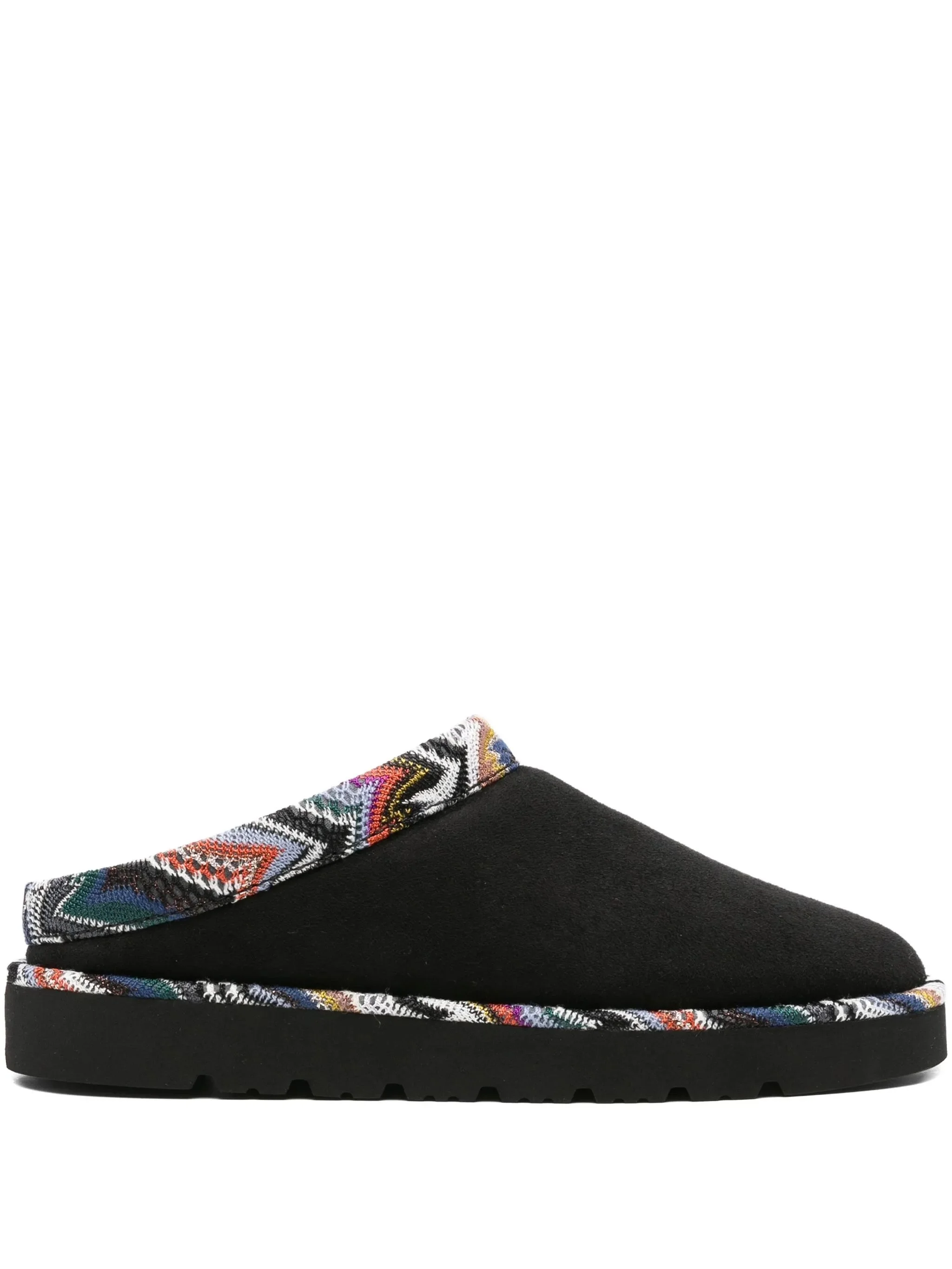 black patterned trim slip-on style flat sole The item you receive may differ slightly from the item photographed. This is due to the artisanal nature with which all Missoni products are constructed. - Color: BLACK - Made in: Bangladesh - Designer Style ID: MWF149 041 Composition and care Lining Composition Calf Leather: 100.0%, Outer Composition Calf Suede: 100.0%, Sole Composition Rubber: 100.0%, Outer Composition Fabric: 100.0%, Lining Composition Fur<>missing Info: 100.0%