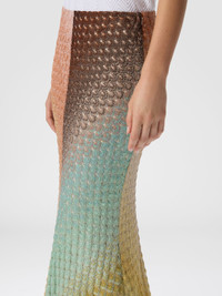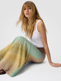 Effortless elegance with this long flared skirt in degrade lace, crafted in Raschel fabric with lame details. The sophisticated craftsmanship and flowing line make this piece a timeless expression of refined style. MORE DETAILS - Women's long flared skirt - Lace workmanship - Degrade pattern Composition: EXTERNAL:82%Rayon, 18%Metal Fiber; LINING : 82%Polyester, 18%Elastane Care instructions: Dry cleaning in tetrachloroethene - mild process ; Do not tumble dry ; Dry flat ; Steam iron only ; Do not wash ; Do not iron ; Do not bleach Made in: Italy Product ID DS25SH1IBR0134S6154