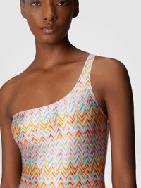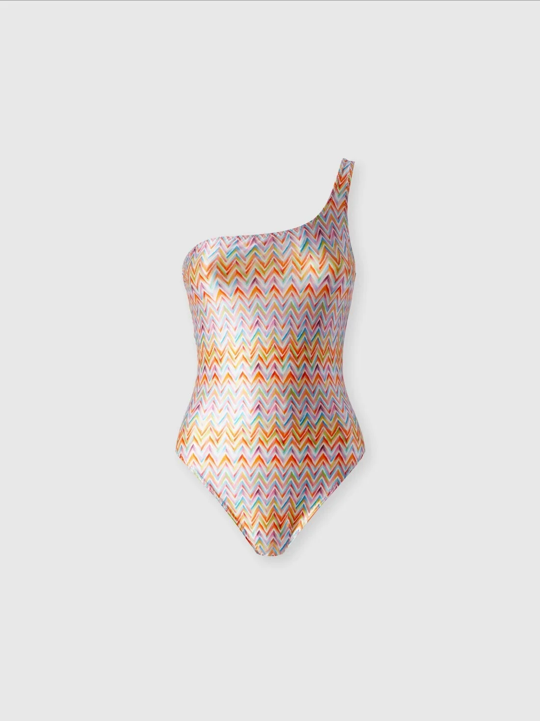Contemporary design for this one-shoulder one-piece swimsuit, made from printed technical fabric with the iconic zigzag pattern. A perfect choice for a modern, distinctive look that celebrates the female silhouette. MORE DETAILS - Women's one-piece swimsuit - Monospalla design - Iconic zig zag pattern - Stretch technical fabric workmanship Composition: EXTERNAL:78%Polyamide, 22%Elastane; LINING : 80%Polyamide, 20%Elastane Care instructions: Hand wash ; Do not tumble dry ; Do not dry clean ; Do not iron ; Do not bleach Made in: Italy Product ID MC22SP04BJ00ODSM9R0