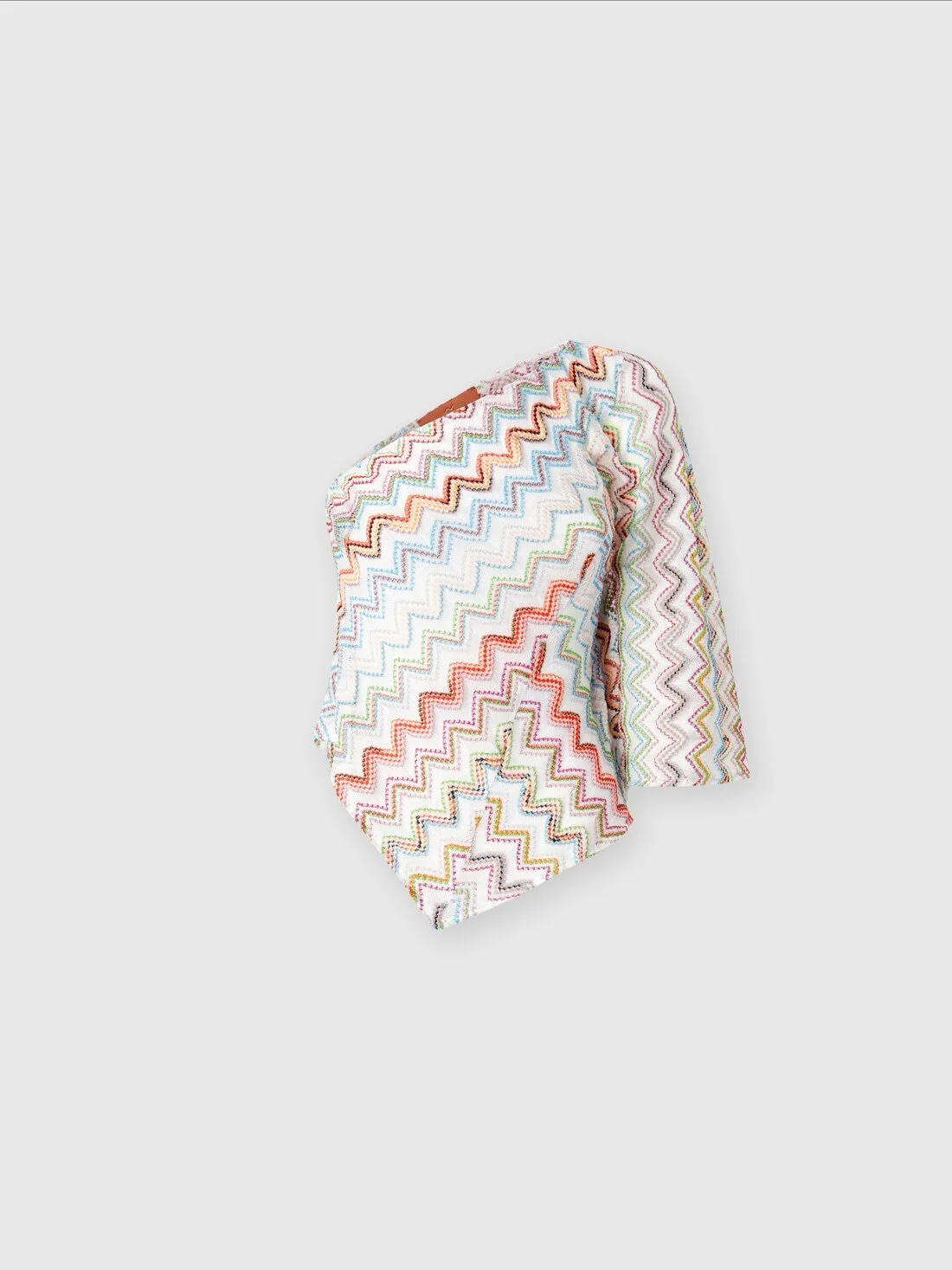 One-shoulder top with the iconic zig-zag pattern in 3D lame, an expression of Missoni's refined style. Made with Raschel workmanship, it features a wide sleeve and an asymmetrical hem, which add movement and character to the design. A unique garment that combines refined details and a comfortable fit. MORE DETAILS - One-shoulder top - Multicolor 3D zig zag pattern - Raschel lame processing - Wide sleeve Composition: EXTERNAL:61%Rayon, 30%Polyester, 9%Metal Fiber Care instructions: Ironing maximum temperature 110°C - without steam ; Dry cleaning in tetrachloroethene ; Do not tumble dry ; Do not wash ; Do not bleach Made in: Italy Product ID MS25SK03BR0101SM9KZ