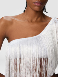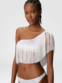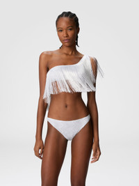 The one-shoulder lame viscose bikini by Missoni stands out for its asymmetrical design and the sheen of the fabric thanks to the lame. Fringes on the briefs add a touch of movement and sensuality, while the iconic chevron motif enhances the style with elegance and dynamism. MORE DETAILS - One-shoulder viscose bikini - Zigzag pattern - Decorative fringes Composition: EXTERNAL:91%Rayon, 9%Metal Fiber; LINING : 80%Polyamide, 20%Elastane Care instructions: Hand wash ; Do not tumble dry ; Do not dry clean ; Do not iron ; Do not bleach Made in: Italy Product ID MS25SP07BR00ZXS01FJ
