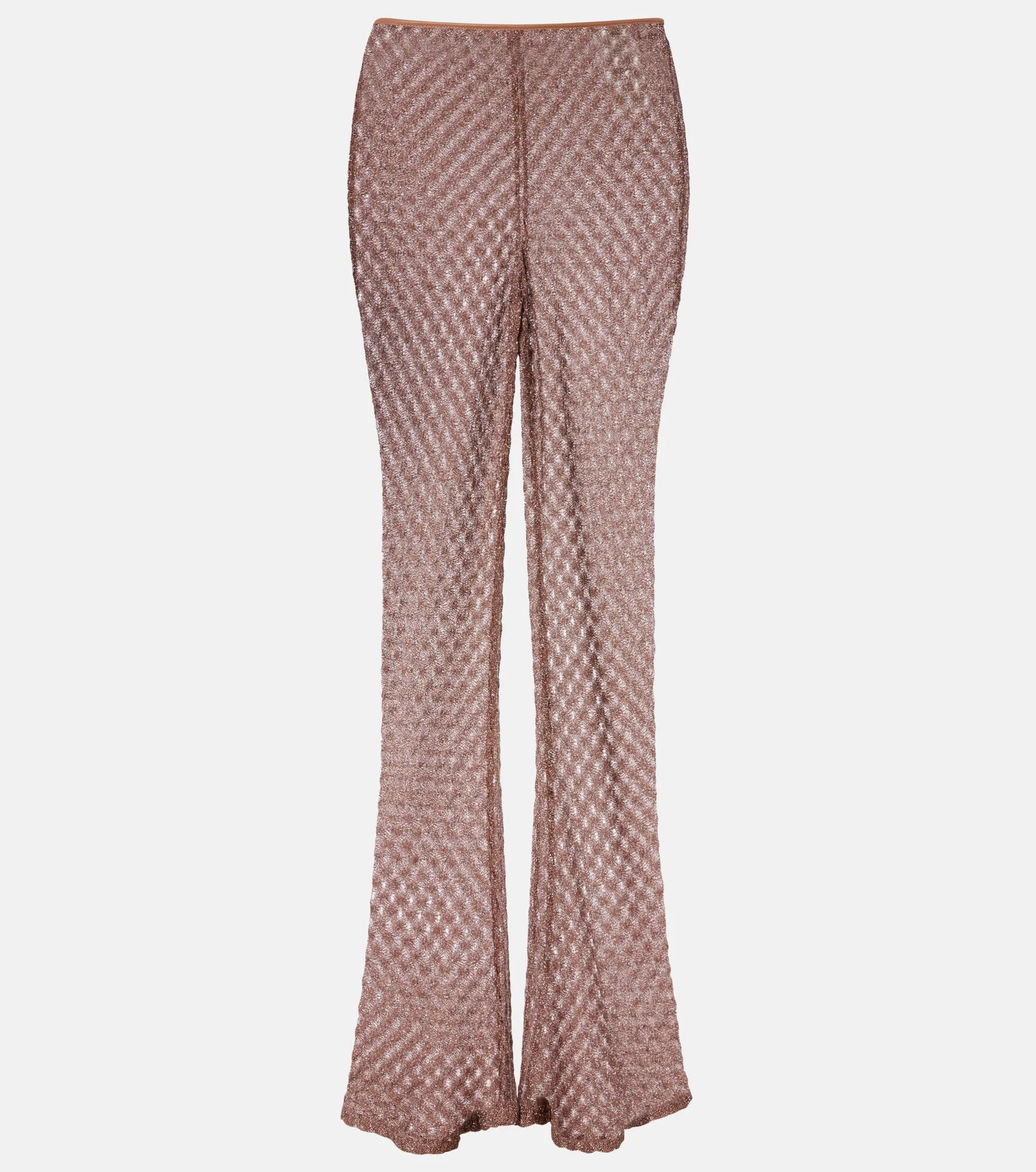 With innovative materials and daring silhouettes, Missoni is the go-to brand for glamour and charm on the beach. Made from shimmering lame, these pants are tailored to a flared silhouette with an open-knit finish. Product Details - Material: 87% viscose, 13% metallic fibres - Care instructions: dry clean - Made in Italy - Color: brown - Designer color name: Brown - Item color: brown - Elasticated waistband - Item number: P01107462 Size & Fit - True to size - Elasticated waist - Stretchy fabric - Flared - Sits low on the hips - The model seen in the picture is 178cm-5'10" and wearing a size IT 38