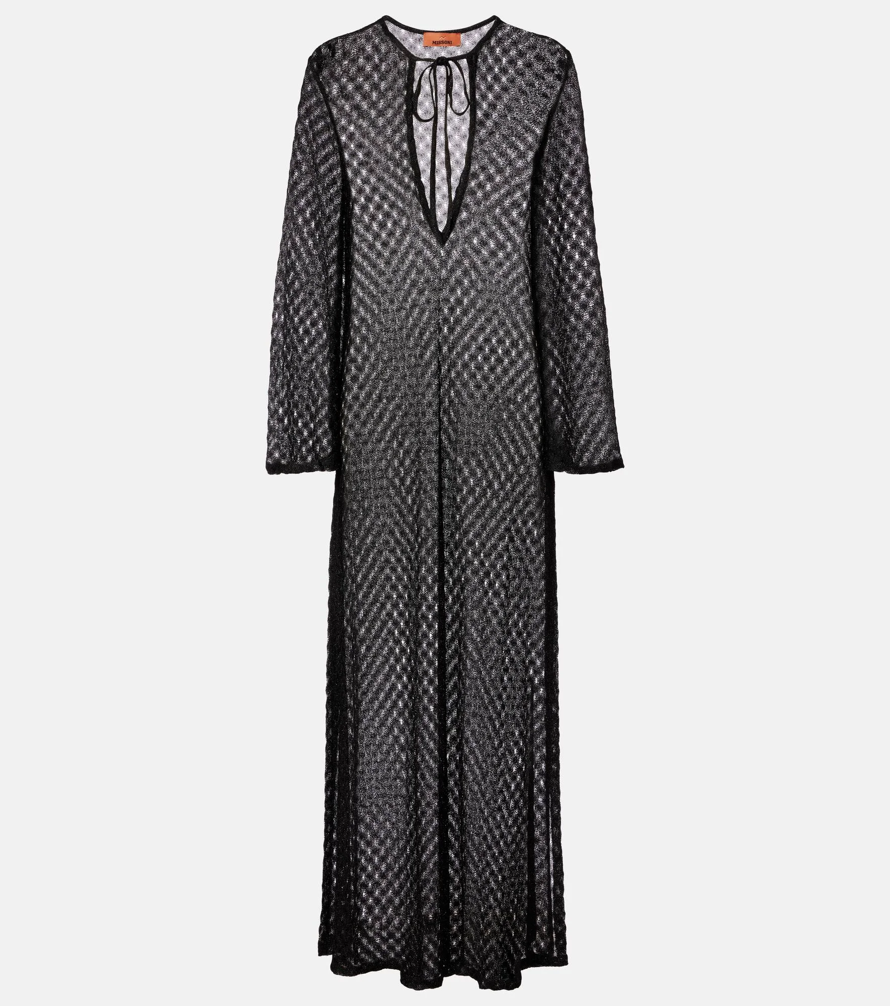 Missoni is the go-to choice for effortless beach looks and poolside glamour. Crafted from lame, this kaftan is designed with a self-tie plunging neckline and an open-knit finish that creates a sheer effect. Product Details - Material: 83% viscose, 17% metallic fibres - Care instructions: dry clean - Made in Italy - Designer color name: Black - Item color: black - Self-tie collar - Hem: straight - Side slits - Item number: P01107527 Size & Fit - True to size - Straight fit - Stretchy fabric - slit length 75,0cm-29.5" - Height of model is 175cm-69" and wears a size IT 40
