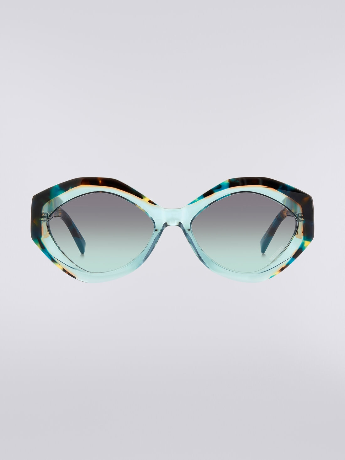 Vibrant colour combinations and eccentric geometric silhouettes blend harmoniously with Missoni's signature patterns in the eyewear collection. The acetate model, with its bold and eclectic design, is designed to enhance any look. The oval shape lends a touch of elegance and sensuality to these sunglasses, which are decorated with oversized temples featuring the iconic triangular metal insert with the laser-engraved Missoni logo and the unmistakable tone-on-tone zigzag temple tips. The frame is completed with a laser-engraved Missoni logo on the left lens. MORE DETAILS - Acetate frame - Oval silhouette - Triangular metal plate - Zigzag temple tips - Laser-etched logo temples Composition: EXTERNAL:100%Acetate; INSERTS:100%Acetate Made in: China Product ID LS24S008BV008BS613B