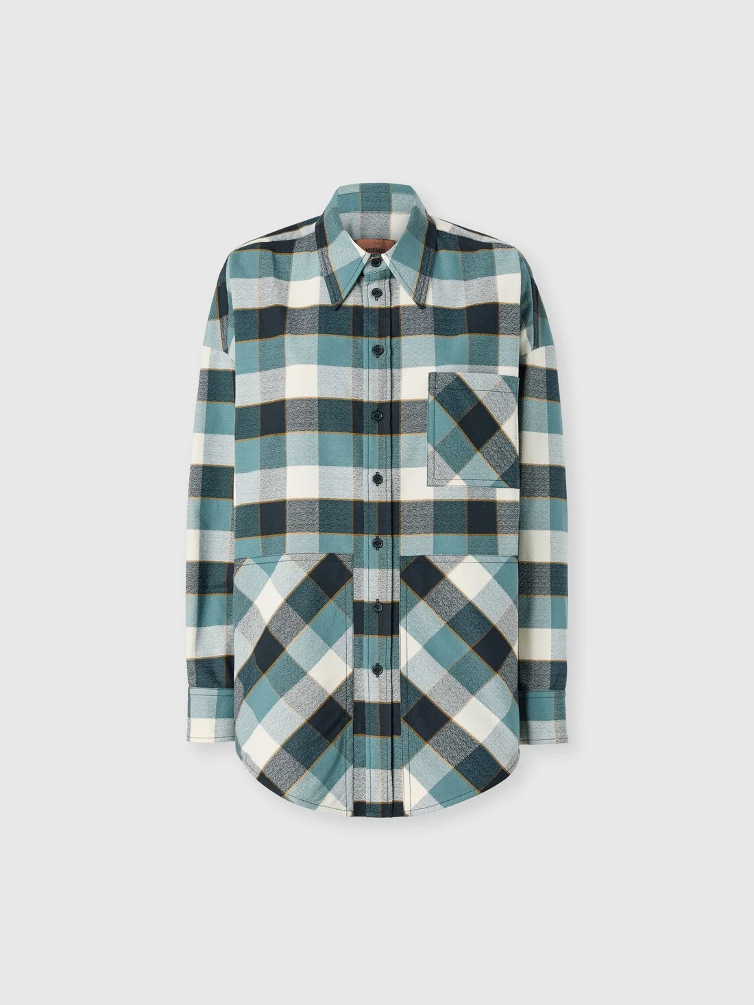Oversized women’s cotton shirt featuring a check pattern that adds graphic and sophisticated appeal. The relaxed fit and pure cotton fabric ensure comfort and versatility, making it a perfect choice for a modern casual look with a distinctive touch. MORE DETAILS - Women's overshirt - Check pattern in cotton Composition: EXTERNAL:100%Polyester Care instructions: Wash max 30°C - Mild process ; Ironing maximum temperature 110°C - without steam ; Do not tumble dry ; Do not dry clean ; Do not bleach Made in: Italy Product ID DS25WJ0PBW00Z6S72O8