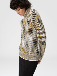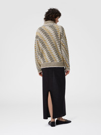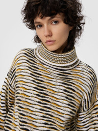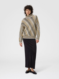 This oversized women’s turtleneck sweater by Missoni, made of cotton blend, stands out for its refined slubbed workmanship—a technique that fully expresses the brand’s mastery in yarn crafting. The wide silhouette and relaxed design provide exceptional comfort, while the soft texture and special workmanship give the piece a distinctive character, perfect for a contemporary look that blends elegance and modernity. MORE DETAILS - Turtleneck sweater - Boxy fit - Flame knit - Cotton blend Composition: EXTERNAL:42%Cotton, 34%Polyamide, 8%Polyester, 7%Mohair goat, 5%Alpaca Fibra, 3%Wool, 1%Elastane Care instructions: Ironing maximum temperature 110°C - without steam ; Hand wash ; Dry cleaning in tetrachloroethene ; Wash inside out ; COOL HAND WASH ; Do not tumble dry ; Dry flat ; Iron with a cloth between ; Do not bleach Made in: Italy Product ID DS25WN01BK01BTSM9SU