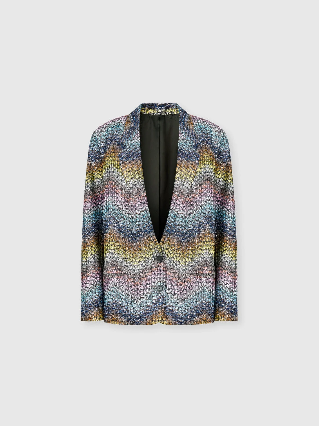 Oversized single-breasted blazer in a Greek-style zigzag knit with sequins