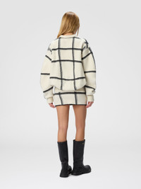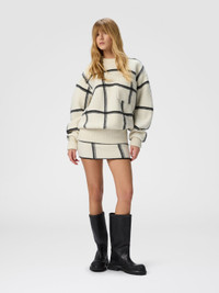 Oversized wool check crew neck sweater
