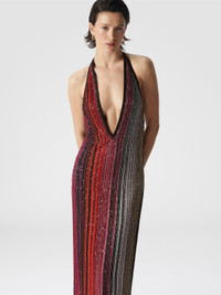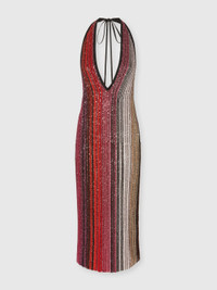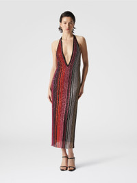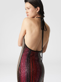 This midi dress expresses a bold and modern elegance. The partialized stripes and sparkling sequins give a glamorous effect, while the deep V-neck and the open back, completed by the lacing behind the neck, create a sensual and decisive silhouette, in perfect harmony with the unmistakable style of Missoni. MORE DETAILS - Partialized midi dress - Striped pattern - Decorative Sequins - V-neck Composition: EXTERNAL:76%Rayon, 9%Polyamide, 8%Metal Fiber, 6%Polyester, 1%Elastane; LINING : 82%Polyester, 18%Elastane Care instructions: Ironing maximum temperature 110°C - without steam ; Dry cleaning in tetrachloroethene - mild process ; Do not tumble dry ; Iron inside out ; Dry inside out ; Dry flat ; Do not wash ; Do not bleach Made in: Italy Product ID DS25SG15BK042DSM9NA