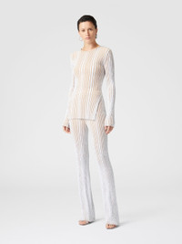 These stretch ribbed flare trousers combine comfort and elegance. Sequin details add a subtle sparkle, while the slipped fit and width at the bottom enhance the figure harmoniously. MORE DETAILS - Palazzo trousers - Ribbed knitting - Decorative sequins Composition: EXTERNAL:45%Rayon, 34%Polyester, 20%Polyamide, 1%Elastane Care instructions: Hand wash ; Dry cleaning in tetrachloroethene - mild process ; Ironing maximum temperature 110°C - without steam ; Wash inside out ; Dry flat ; Iron inside out ; Do not tumble dry ; Wash separately ; Do not bleach Made in: Italy Product ID DS25SI0ABK042FS01GN