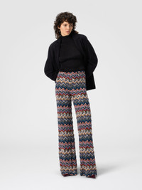 A refined interpretation of the classic palazzo trouser, this women’s piece in lace with raschel workmanship is made of viscose blend with lame threads that enhance its texture. The waistband defines the silhouette, adding a sophisticated and feminine touch to the design. MORE DETAILS - Palazzo pants - Raschel lace-effect knit - Viscose blend with lame threads Composition: EXTERNAL:66%Rayon, 30%Wool, 4%Metal Fiber; LINING : 77%Polyamide, 23%Elastane Care instructions: Dry cleaning in tetrachloroethene - mild process ; Ironing maximum temperature 110°C - without steam ; Do not tumble dry ; Dry flat ; Do not wash ; Do not bleach Made in: Italy Product ID DS25WI0QBR012FSM9R3