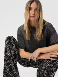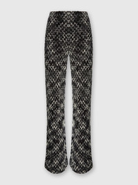This women’s palazzo trouser is defined by bold and textured elegance, made of ribbed slub lace in a refined blend of wool and viscose. The rich texture and wide leg give life to a garment with a sophisticated spirit and strong visual impact. MORE DETAILS - Palazzo pants - Raschel flame ribbed lace knit - Viscose and wool blend Composition: EXTERNAL:54%Wool, 46%Rayon; LINING : 77%Polyamide, 23%Elastane Care instructions: Dry cleaning in tetrachloroethene - mild process ; Ironing maximum temperature 110°C - without steam ; Dry flat ; Do not tumble dry ; Do not wash ; Do not bleach Made in: Italy Product ID DS25WI0QBR012NS80DO