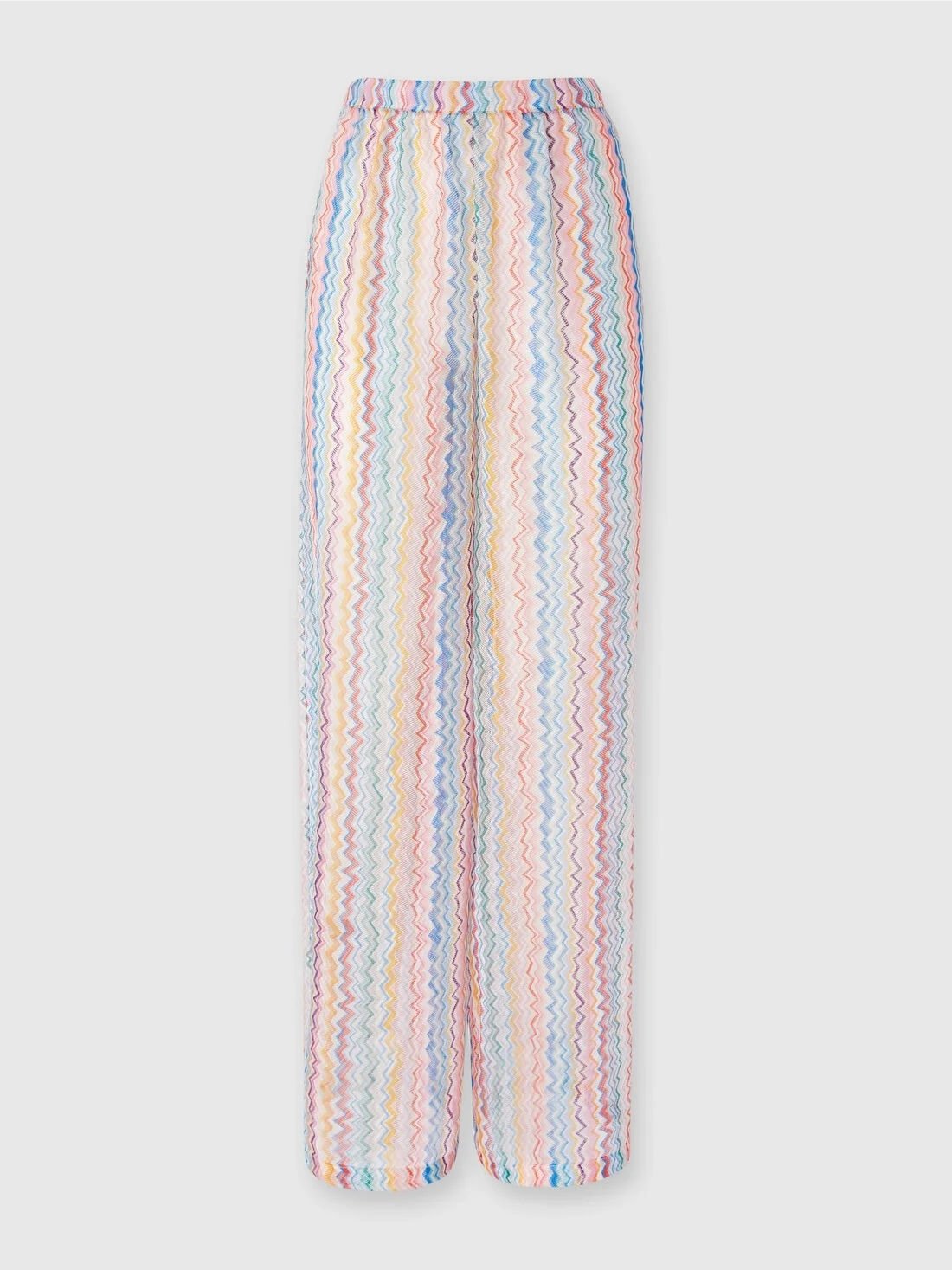 A sophisticated and modern piece, these palazzo pants feature slight transparency and the renowned zigzag pattern. The printed Raschel work creates a light, airy effect. MORE DETAILS - Women's palazzo pants - Raschel printed workmanship - Iconic zig zag pattern Composition: EXTERNAL:100%Polyester Care instructions: Ironing maximum temperature 110°C - without steam ; Dry cleaning in tetrachloroethene ; Do not tumble dry ; Do not wash ; Do not bleach Made in: Italy Product ID MC25SI01BR0130SM9QJ