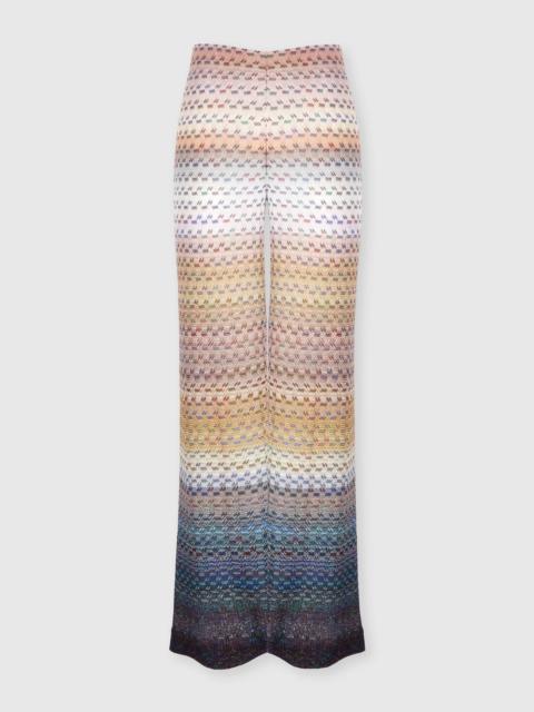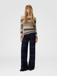Women’s palazzo trousers with a fluid yet bold silhouette, crafted in fine raschel wave knit that forms a material, dynamic texture. The 100% viscose yarn enhances the garment’s softness and drape, accompanying movement with natural elegance. MORE DETAILS - Women's palazzo pants - Wave-pattern raschel knit - 100% viscose Composition: EXTERNAL:100%Rayon; LINING : 77%Polyamide, 23%Elastane Care instructions: Dry cleaning in tetrachloroethene - mild process ; Ironing maximum temperature 110°C - without steam ; Do not tumble dry ; Dry flat ; Do not wash ; Do not bleach Made in: Italy Product ID DS25WI1ABR014CS91R7