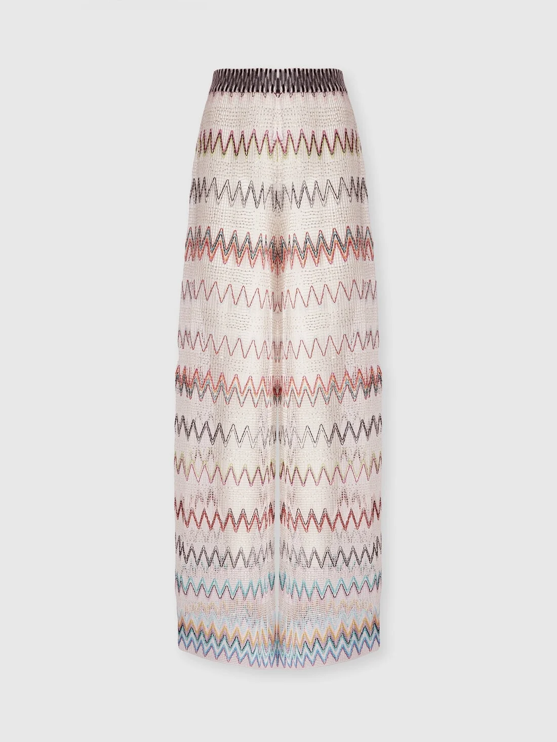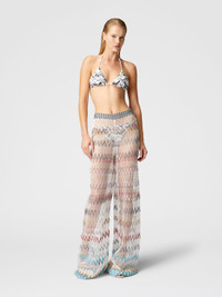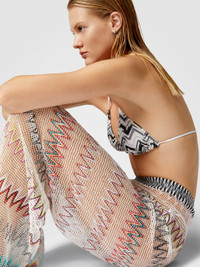 These mesh cover-up trousers with zig zag pattern and sequins are a perfect mix of elegance and boldness. The light and transparent texture of the fabric plays with the reflections of the sequins, while the side slits at the bottom give fluidity and movement to the silhouette. A garment with a glamorous soul, perfect for adding a bright and sophisticated touch to any beach look. MORE DETAILS - Long cover-up pants - Mesh Processing - Zig zag pattern with sequins - Slits at the bottom Composition: EXTERNAL:95%Rayon, 3%Polyamide, 2%Polyester Care instructions: Ironing maximum temperature 110°C - without steam ; Dry cleaning in tetrachloroethene ; Do not tumble dry ; Do not wash ; Do not bleach Made in: Italy Product ID MC23SI00BV00GQSM9MV