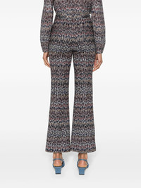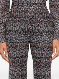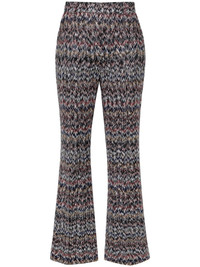 zigzag-woven lame cropped trousers Highlights - Multicolour - Signature zigzag woven design - Metallic threading - Lame effect - Tailored cut - Mid-rise - Concealed front button, hook and zip fastening - Belt loops - Two diagonal pockets to the sides - Rear welt pocket - Pressed crease - Straight hem - Cropped leg - The item you receive may differ slightly from the item photographed. this is due to the artisanal nature with which all missoni products are constructed. Made in Italy Composition Outer: Viscose 60%, Metallic Fibre 21%, Polyamide 19% Lining: Polyester 100% SIZE & FIT Model measurements Height 5 ft 10 in(1.78 m) Bust/Chest 33.07 in(84 cm) Hips 36.61 in(93 cm) Waist 24.8 in(63 cm) FittingInformation Designed with a flared hem, these trousers allow for a close fit at the waist with a slim fit over the leg and widening towards the hem Made with a midweight knit, this piece offers some stretch This piece fits true to size – take your usual size