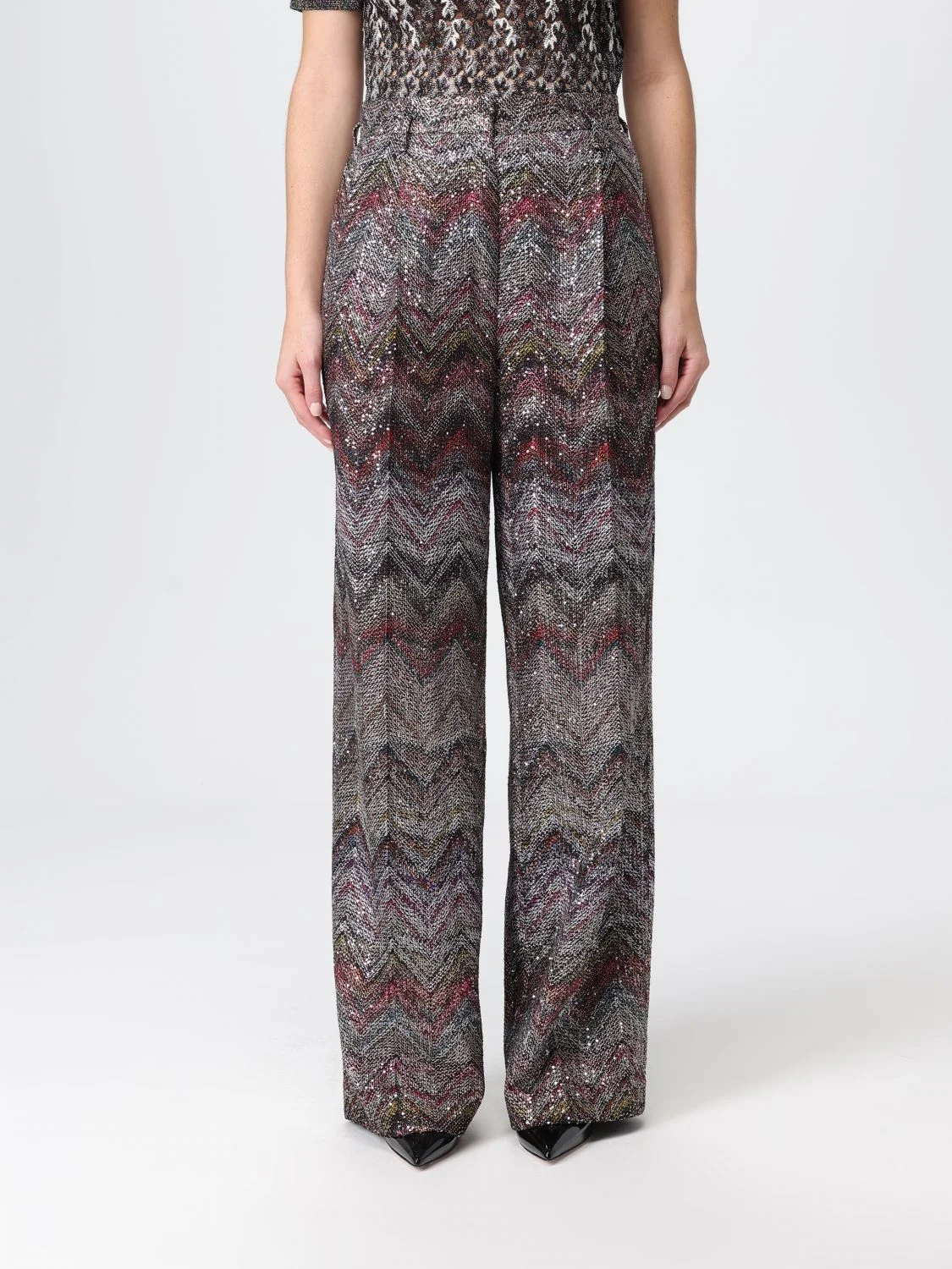 DESCRIPTION - Style: Classic - Pockets: America - Waist: High waist - Bottom: With cuff - Closure: With button and zip - Materials: Lurex - Pattern: Multicolor waves DETAILS AND CARE Composition 47% Viscosa 26% POLIAMIDE 21% POLIESTERE 6% F SIZE AND FIT Sizes not available Size and fit Regular fit Designer code: DS25WI0KBC005G S01HU Giglio Code: H35124 Designer: Missoni Collection: Missoni Woman Category: Clothing Missoni