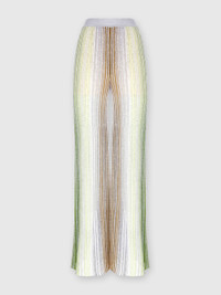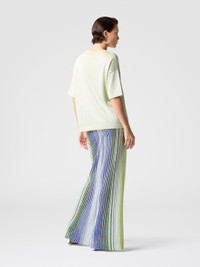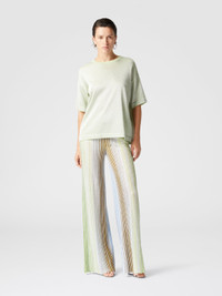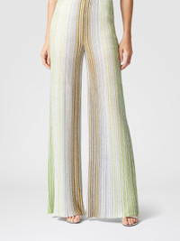 These palazzo pants embody the perfect balance between comfort and high fashion. The partialized stripes, enriched with sequins and lame filaments, create a luminous and dynamic effect, while the wide and fluid silhouette makes every movement elegant and decisive, as only Missoni can do. MORE DETAILS - Partial palazzo trousers - Striped pattern - Decorative sequins Composition: EXTERNAL:66%Rayon, 14%Polyamide, 10%Metal Fiber, 9%Polyester, 1%Elastane; LINING : 82%Polyester, 18%Elastane Care instructions: Dry cleaning in tetrachloroethene - mild process ; Ironing maximum temperature 110°C - without steam ; Do not tumble dry ; Dry flat ; Iron inside out ; Dry inside out ; Do not wash ; Do not bleach Made in: Italy Product ID DS25SI0BBK042DSM9N9