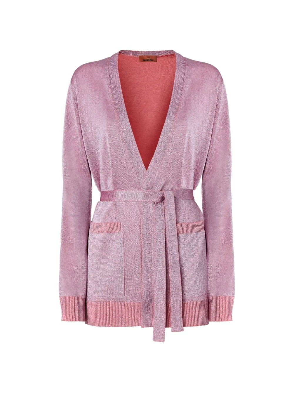 patch-pocket belted cardigan Highlights - Pink - Contrasting ribbed trims - Open front - Patch pockets - Self-tie belt - The item you receive may differ slightly from the item photographed. this is due to the artisanal nature with which all missoni products are constructed. Imported Composition Rayon 87%, Metallised Fibres 13% Washing instructions Dry Clean Only