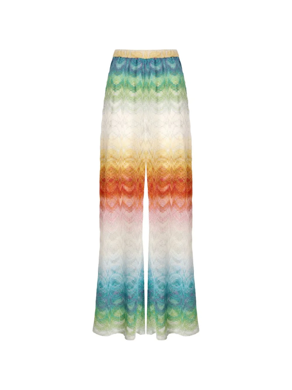 patterned trousers Highlights - White and multicolour - All-over pattern - Elasticated waistband - Sheer finish - Wide leg - Knitted construction - The item you receive may differ slightly from the item photographed. this is due to the artisanal nature with which all missoni products are constructed. Made in Italy Composition Fabric 100% Washing instructions Read Manufacturer Guidelines