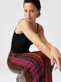 Missoni elevates the classic long skirt with its inimitable touch of style. Partial stripes and sequins, embellished with lame filaments, give the garment a vibrant brightness. A garment that perfectly blends elegance and originality, ideal for those who love to stand out. MORE DETAILS - Long Partial Skirt - Striped pattern - Decorative sequins Composition: EXTERNAL:67%Rayon, 14%Polyamide, 10%Metal Fiber, 8%Polyester, 1%Elastane; LINING : 82%Polyester, 18%Elastane Care instructions: Ironing maximum temperature 110°C - without steam ; Dry cleaning in tetrachloroethene - mild process ; Do not tumble dry ; Dry flat ; Iron inside out ; Dry inside out ; Do not wash ; Do not bleach Made in: Italy Product ID DS25SH0BBK042DSM9NA