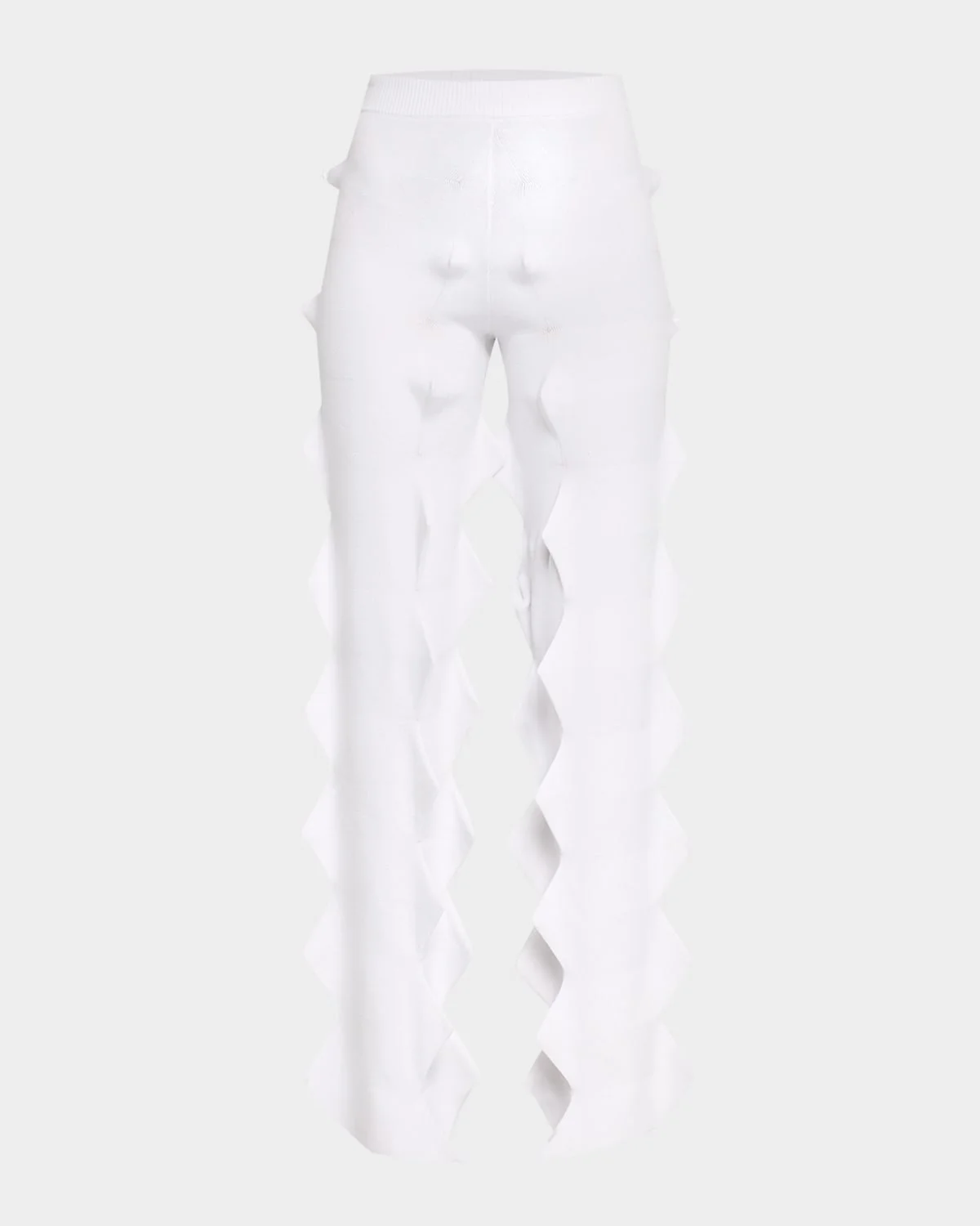 - Missoni trousers in a pointed knit - Full length - Mid rise sits high on hip - Straight legs - Full length - Pull-on style - Rayon/cellulose acetate/polyester - Made in Italy