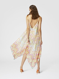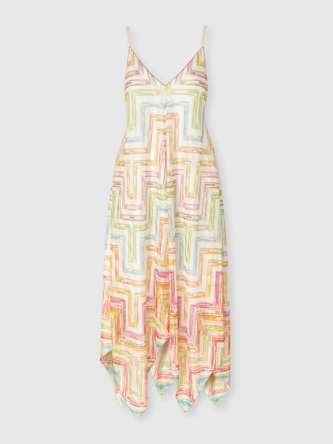 Long tulle cover-up dress with pattern, made with raschel processing for a light and delicate texture. The V-neck adds an elegant touch, while the scarf hem gives movement and fluidity to the design, creating a refined and versatile garment. MORE DETAILS - Long cover-up dress - Tulle Printed - Scarf bottom - V-neck Composition: EXTERNAL:100%Polyester Care instructions: Ironing maximum temperature 110°C - without steam ; Dry cleaning in tetrachloroethene ; Do not tumble dry ; Do not wash ; Do not bleach Made in: Italy Product ID MC25SQ01BR010XSM9N4