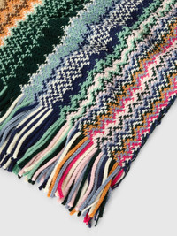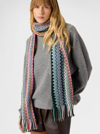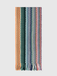 An iconic accessory of Missoni style, this women’s pure wool scarf with fringes features the signature chevron knit. The graphic pattern and soft fabric create a perfect balance of warmth, movement, and sophistication, elegantly completing any outfit. MORE DETAILS - Women’s scarf with fringes - Chevron pattern - 100% wool Composition: EXTERNAL:100%Wool Care instructions: Dry cleaning in tetrachloroethene ; Do not tumble dry ; Do not wash ; Do not iron ; Do not bleach Made in: Italy Product ID LS25WS0QBV00IHSM67R
