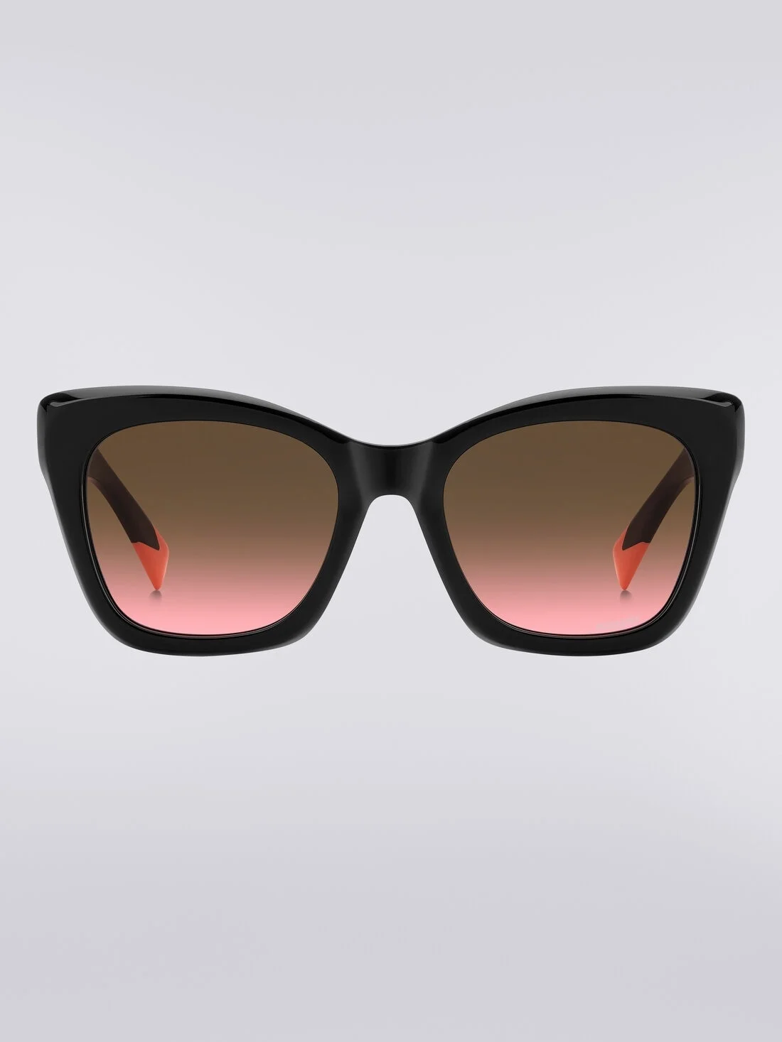 Triangle-shaped decorations on temples combine texture and solid inserts with metal details for a three-dimensional effect. MORE DETAILS - Gradient polyester lens - Acetate front - Acetate temple - Lens width 53mm - Bridge size 21mm - Temple length 140mm Composition: EXTERNAL:100%Acetate; INSERTS:100%Acetate Made in: China Product ID LS25S002BV008BSM9U8