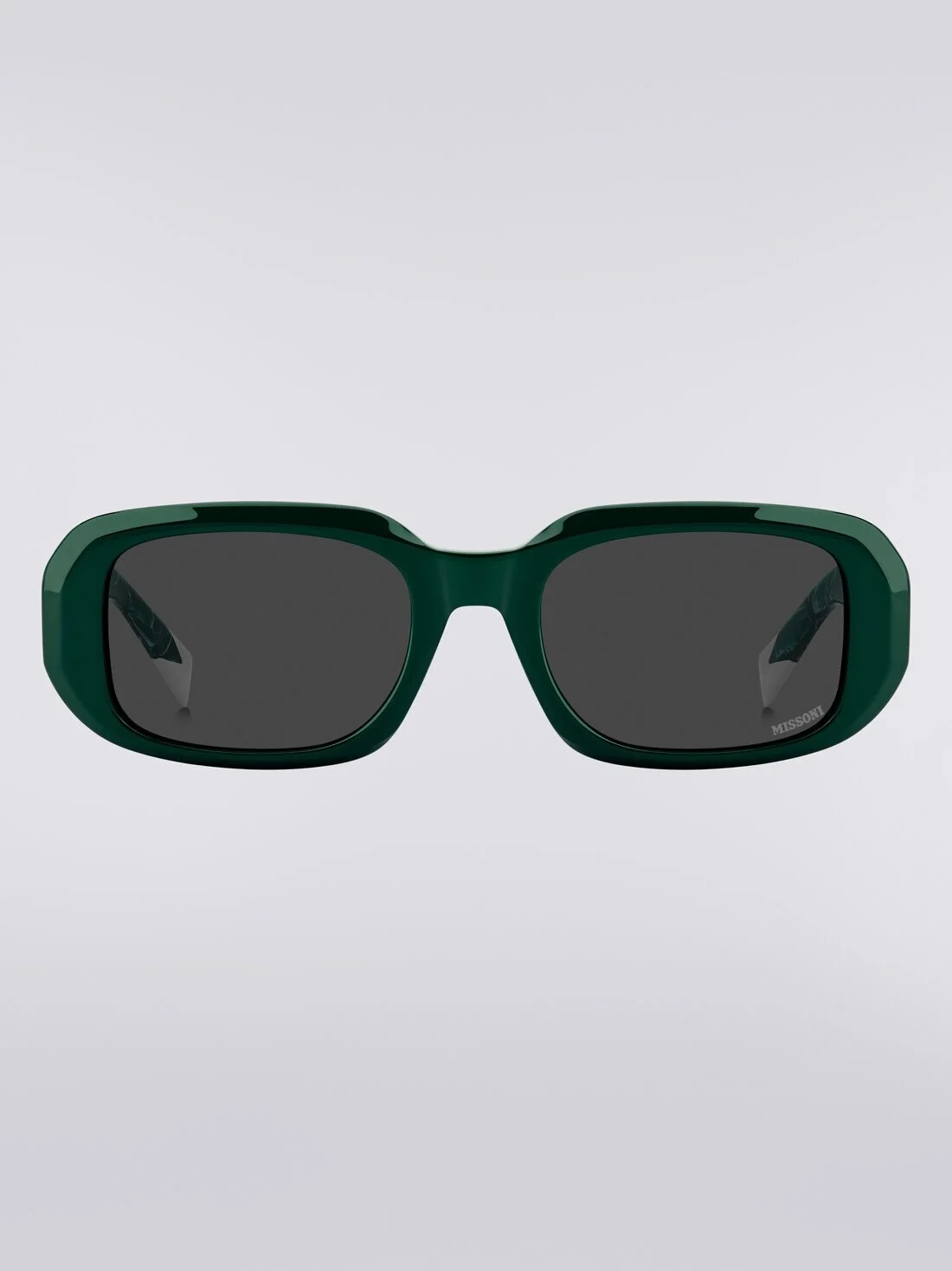 Triangle-shaped decorations on temples combine texture and solid inserts with metal details for a three-dimensional effect. MORE DETAILS - Solid tint polyester lens - Acetate front - Acetate temple - Lens width 52mm - Bridge size 20mm - Temple length 140mm Composition: EXTERNAL:100%Acetate; INSERTS:100%Acetate Made in: China Product ID LS25S003BV008BS6140