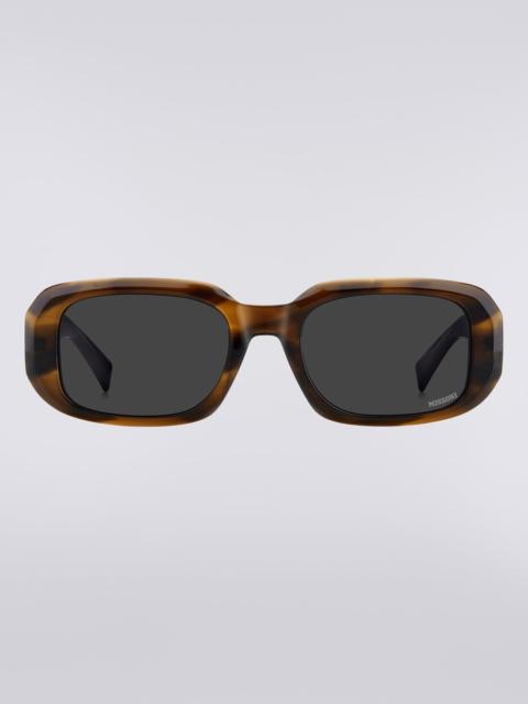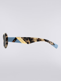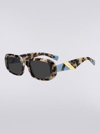 Triangle-shaped decorations on temples combine texture and solid inserts with metal details for a three-dimensional effect. MORE DETAILS - Solid tint polyester lens - Acetate front - Acetate temple - Lens width 52mm - Bridge size 20mm - Temple length 140mm Composition: EXTERNAL:100%Acetate; INSERTS:100%Acetate Made in: China Product ID LS25S003BV008BS01J4