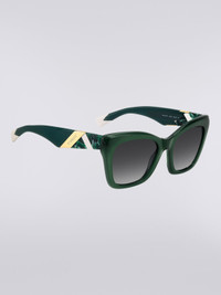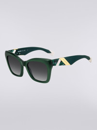 Triangle-shaped decorations on temples combine texture and solid inserts with metal details for a three-dimensional effect. MORE DETAILS - Gradient polyester lens - Acetate front - Acetate temple - Lens width 53mm - Bridge size 21mm - Temple length 140mm Composition: EXTERNAL:100%Acetate; INSERTS:100%Acetate Made in: China Product ID LS25S002BV008BS6140