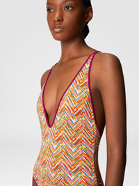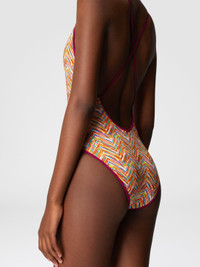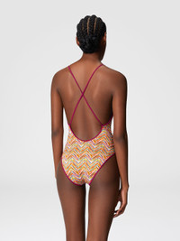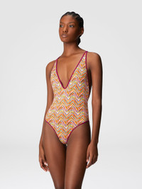 A one-piece swimsuit with clean lines and a V-neck, characterized by its reversible functionality. Two distinct designs come together in a single garment, with a graphic print that gives dynamism and versatility, allowing you to change your look in an instant without sacrificing style. MORE DETAILS - Swimsuit model with print - Reversible - V-neck Composition: EXTERNAL:86%Polyester, 14%Elastane; LINING : 80%Polyamide, 20%Elastane Care instructions: Hand wash ; Do not tumble dry ; Do not dry clean ; Do not iron ; Do not bleach Made in: Italy Product ID MC22SP03BJ00LHSM9MZ