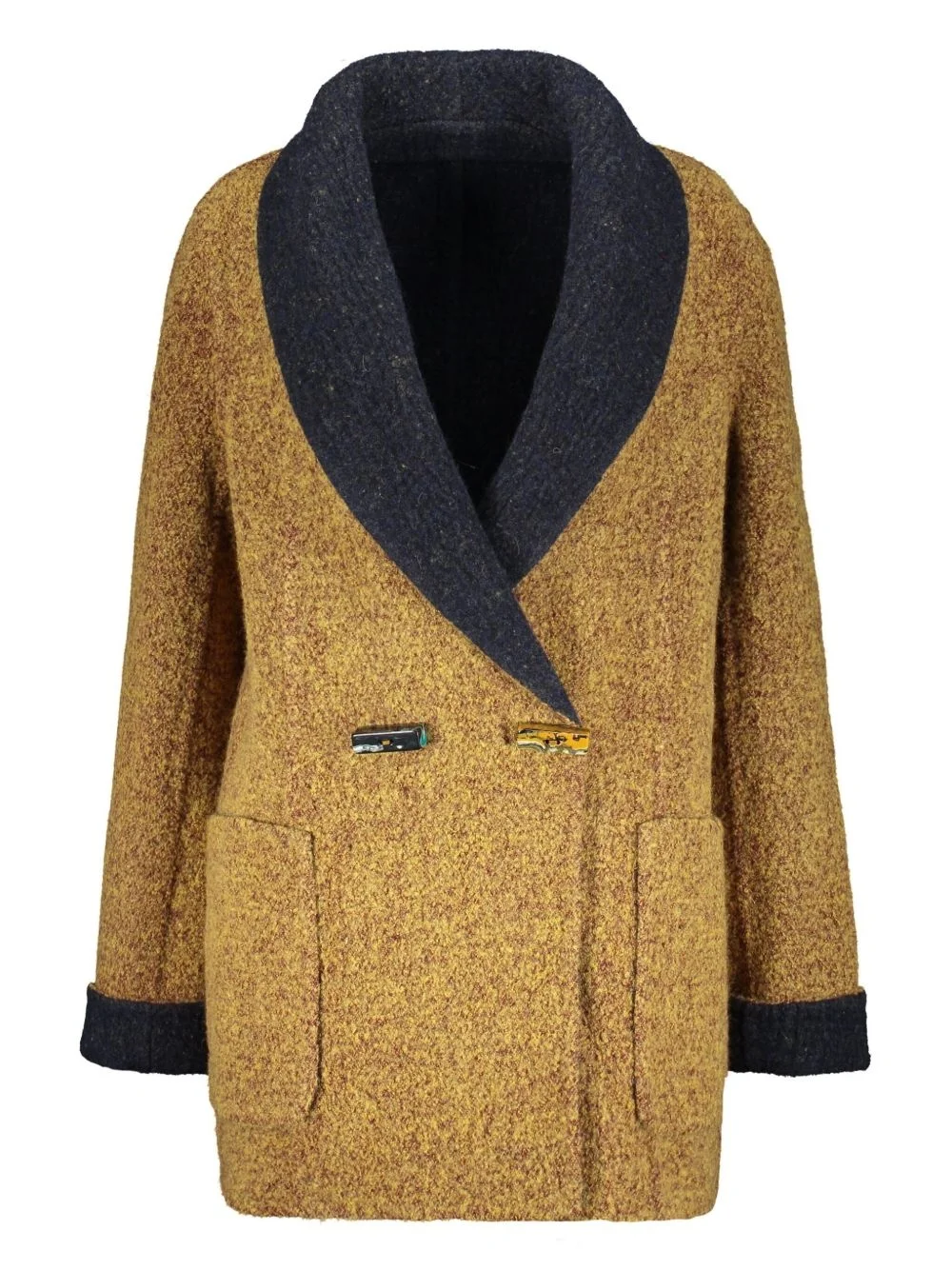 reversible coat Highlights - Mustard yellow - Double-breasted button fastening - Two side patch pockets - Contrasting border - The item you receive may differ slightly from the item photographed. this is due to the artisanal nature with which all missoni products are constructed. Made in Italy Composition Virgin Wool 74%, Polyamide 19%, Mohair 4%, Alpaca Wool 2%, Elastane 1% Washing instructions Dry Clean Only