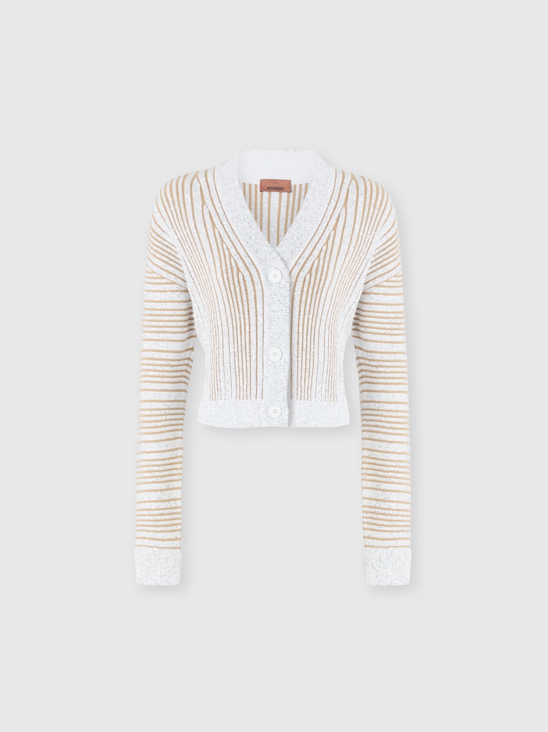 Ribbed cropped cardigan with sequins and V-neck
