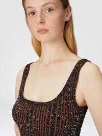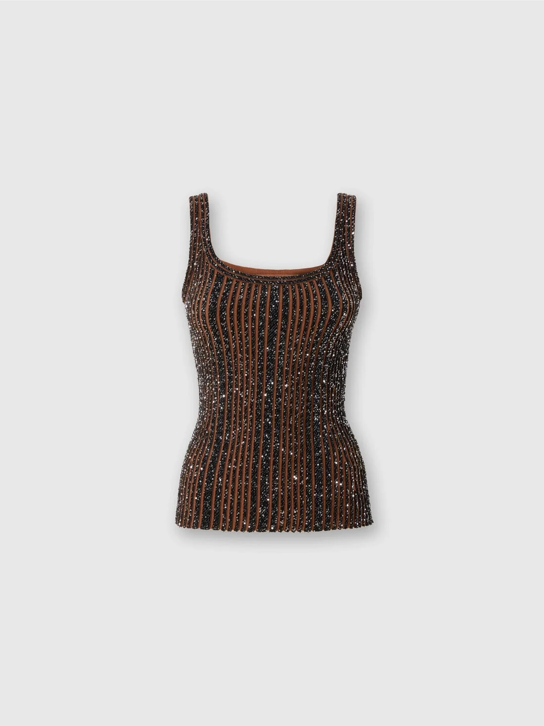 This fitted ribbed tank top combines comfort and brilliance, thanks to the addition of sequins that give a refined light to the garment. Perfect for a casual yet sophisticated look, with the distinctive quality of Missoni. MORE DETAILS - Ribbed tank top - Sparkling Sequins - Snug fit Composition: EXTERNAL:45%Rayon, 35%Polyester, 20%Polyamide Care instructions: Hand wash ; Dry cleaning in tetrachloroethene - mild process ; Ironing maximum temperature 110°C - without steam ; Wash inside out ; Do not tumble dry ; Dry flat ; Iron inside out ; Wash separately ; Do not bleach Made in: Italy Product ID DS25SK09BK042FS91NT