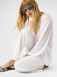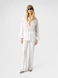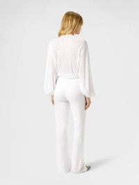 Ribbed Viscose Lamé Straight Trousers with Sequins