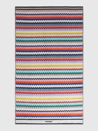 With its striking, contemporary design, the Riverbero beach towel is the epitome of style and practicality. Made of soft cotton terry velour, the towel offers a comfortable feel on contact with the skin. The vibrant zigzag pattern adds dynamism and liveliness, while the logo lettering adds a touch of originality. Measuring 100x180 cm, it is perfect for cuddling up during a day at the beach or pool. MORE DETAILS - Beach towel 100x180 cm - Zigzag pattern - Cotton terry velour - Logo lettering Composition: EXTERNAL:100%Cotton Care instructions: Ironing maximum temperature 150°C ; Do not dry clean ; Tumble drying at lower temperature ; Wash max 40°C ; Do not bleach Made in: Portugal Product ID 1D3SP99893100