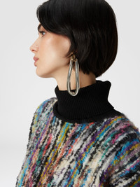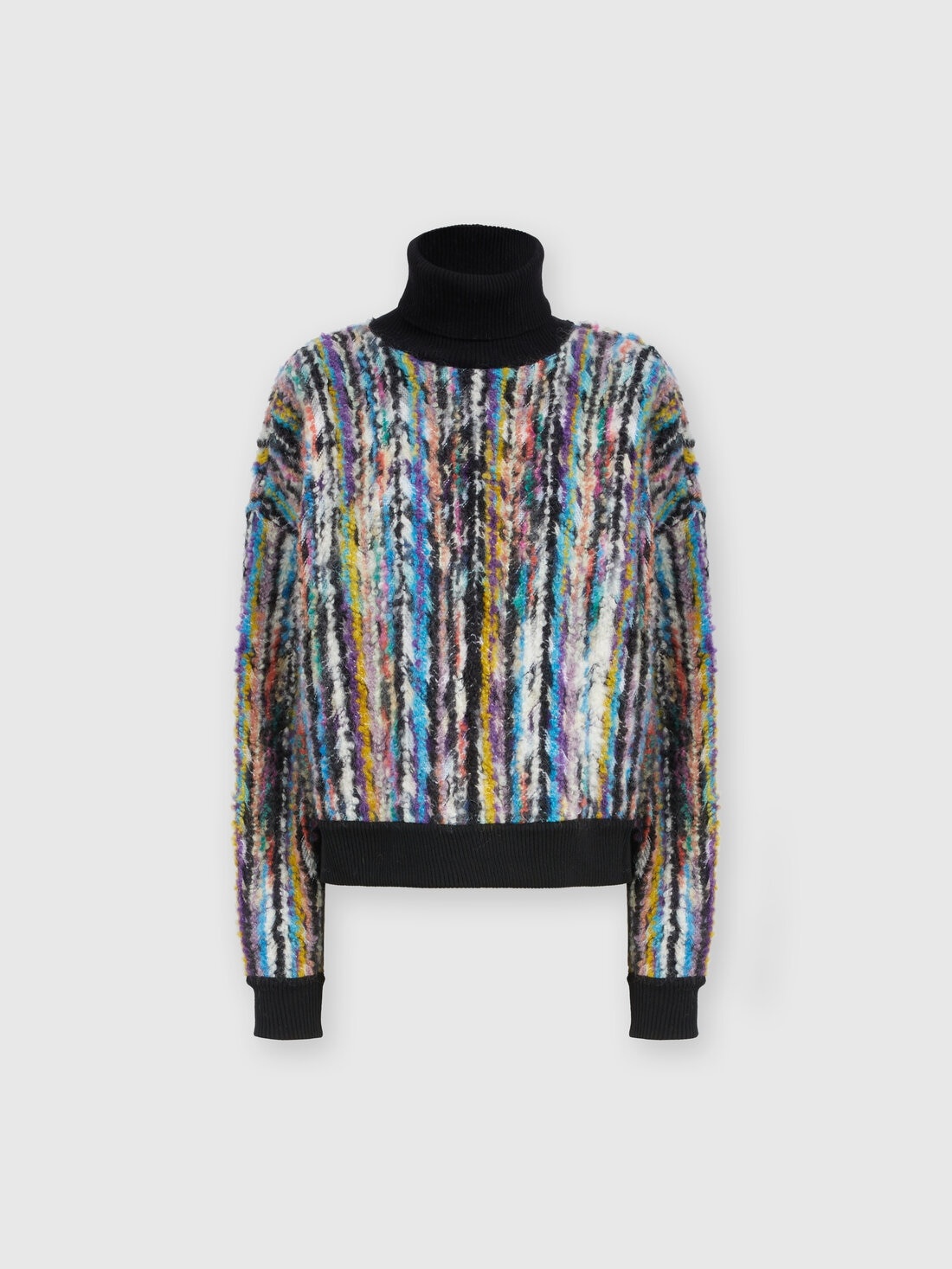 A soft blend of wool and mohair weaved with Caperdoni loom for the turtleneck pullover with contrasting piping. An original garment designed to enliven the day-to-night look in pure Missoni style. MORE DETAILS - Turtleneck Pullovers - Contrasting Profiles - Caperdoni Frame Processing - Wool and mohair blend Composition: EXTERNAL:67%Wool, 20%Mohair goat, 13%Polyamide Care instructions: Dry cleaning in tetrachloroethene - mild process ; Dry flat ; Do not tumble dry ; Do not wash ; Do not iron ; Steam iron only ; Do not bleach Made in: Italy Product ID DS24WN0LBC004LSM9FN