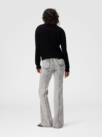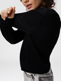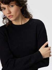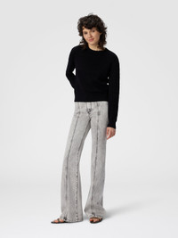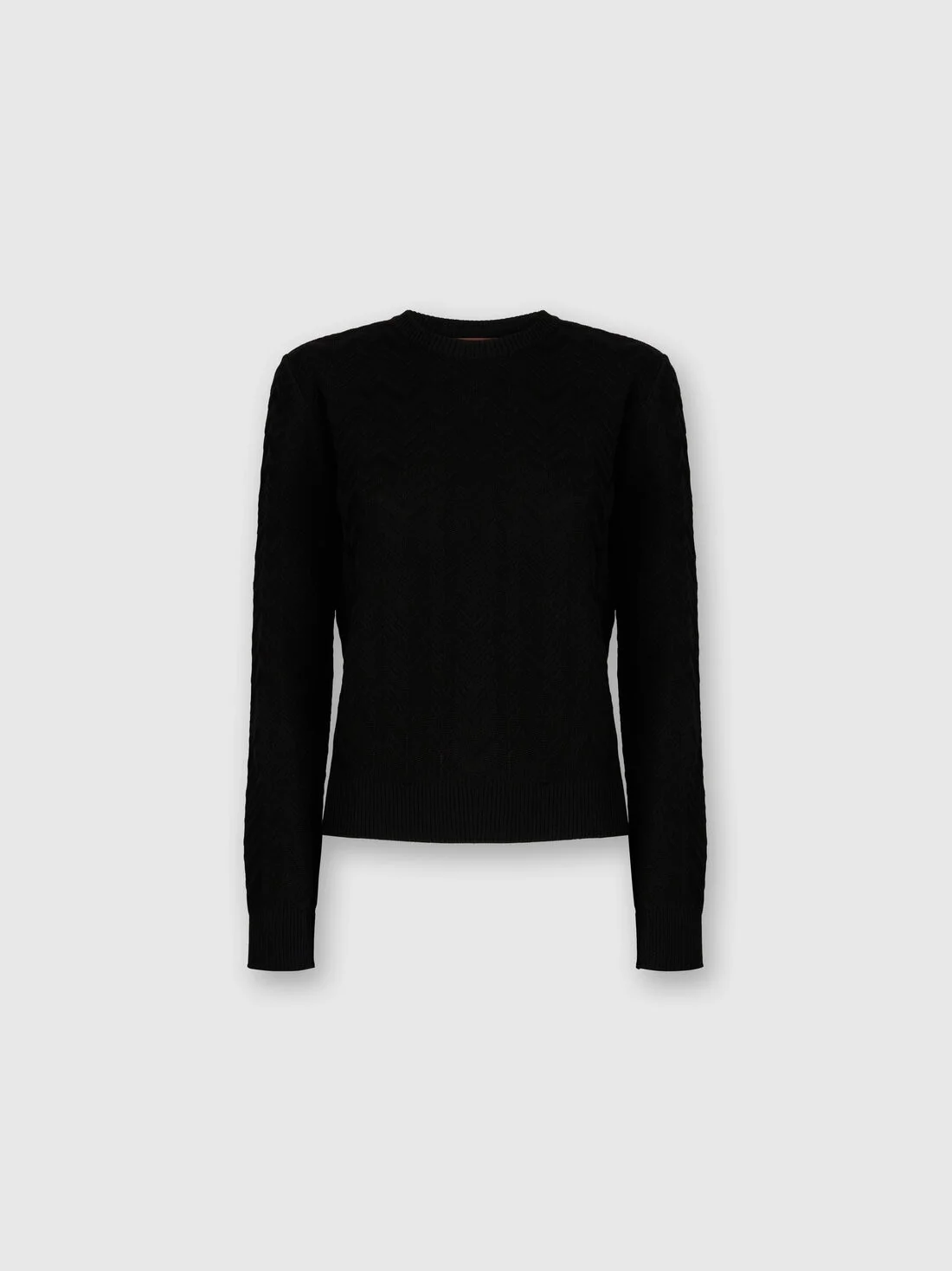 Long-sleeve women’s crew-neck sweater, regular fit, made from a wool and viscose blend, featuring Missoni’s iconic chevron motif in solid color. The combination of fine materials and clean design offers a versatile and refined piece, ideal for adding a distinctive and sophisticated touch to your outfits. MORE DETAILS - Long-sleeve crew neck sweater - Solid color chevron pattern - Wool and viscose blend Composition: EXTERNAL:49%Rayon, 44%Wool, 5%Polyester, 1%Elastane, 1%Polyamide Care instructions: Dry cleaning in tetrachloroethene - mild process ; Ironing maximum temperature 110°C - without steam ; Do not tumble dry ; Dry flat ; Iron inside out ; Do not wash ; Do not bleach Made in: Italy Product ID DS25WN15BK01CPS91QK