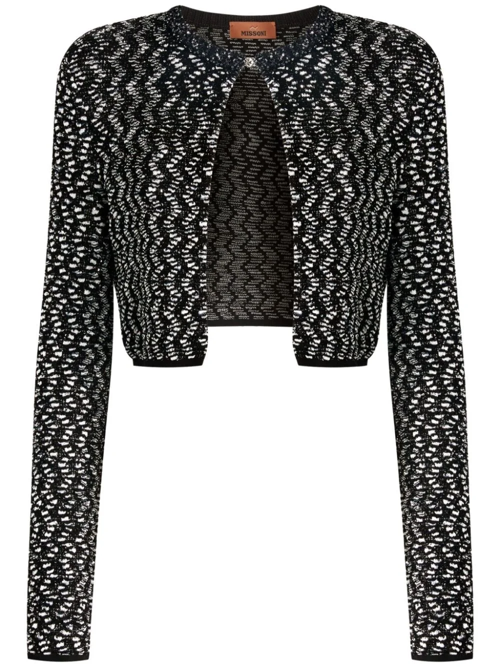 Sequin-embellished cardigan Highlights - Black/multicolor - Sequin embellishment - Round split neck - Button fastening - Cropped - Long sleeves - The item you receive may differ slightly from the item photographed. this is due to the artisanal nature with which all missoni products are constructed. Made in Italy Composition Rayon 73%, Polyamide 18%, Polyester 8%, Elastane 1%