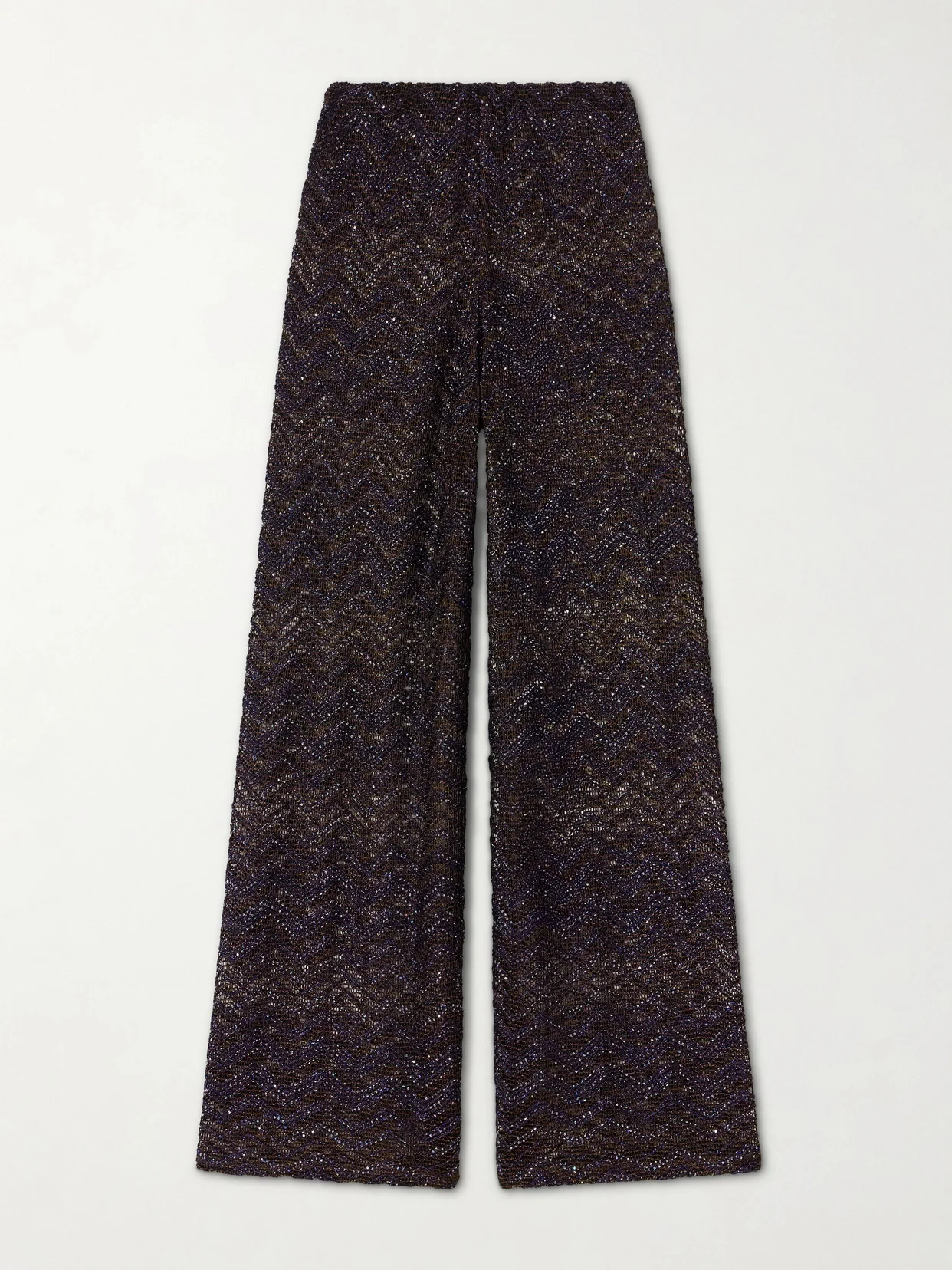 Missoni's vibrant patterns and signature techniques make its clothing so fun and distinctive. Embellished with sequins, these wide-leg pants are crochet-knitted using shimmering metallic thread and feature the label's iconic zigzags.