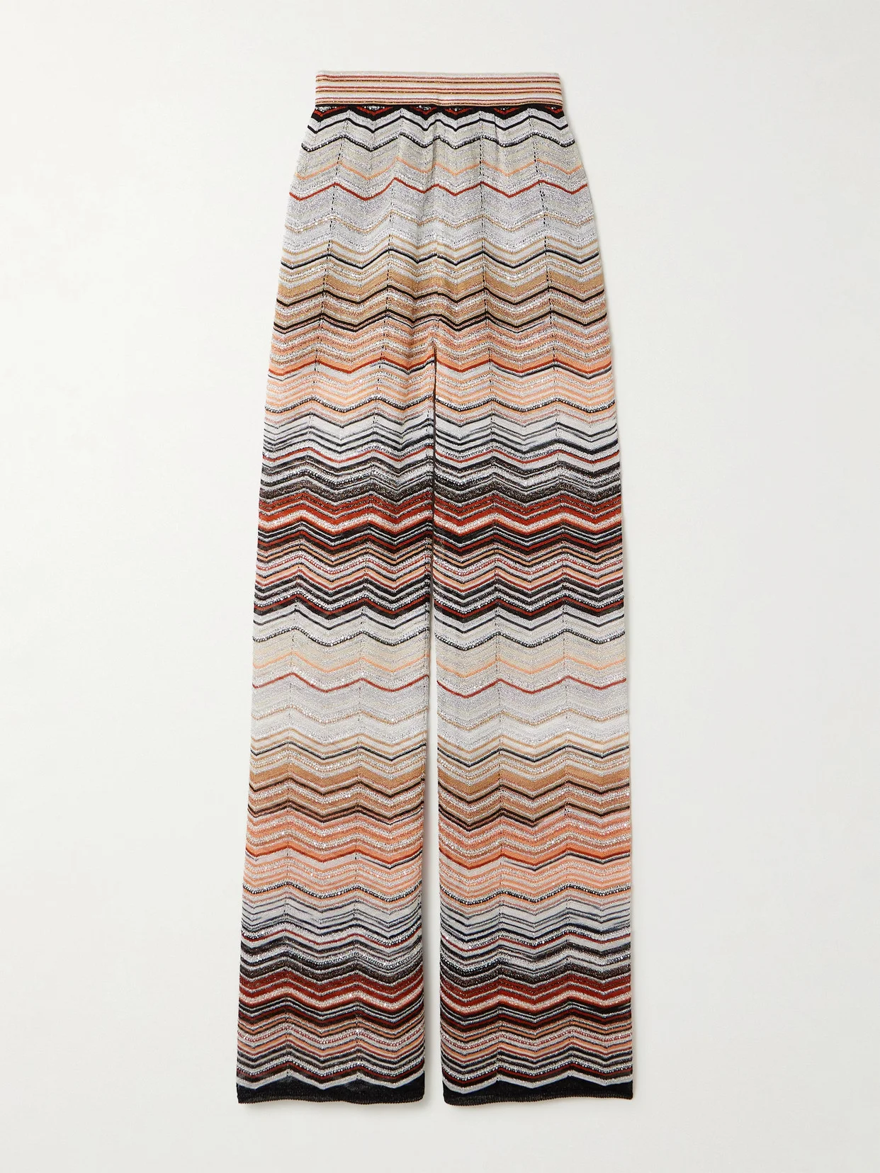 The zigzag stripes make Missoni's pants an instantly recognizable choice. Crochet-knitted with glistening metallic threads, they sit high on the waist and have wide legs with floor-skimming cuffs. We also have the matching tank in our edit.