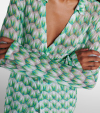 Missoni is the go-to choice for effortless beach looks and poolside glamour. This knitted blouse features a deep V-neckline, scalloped trims, and a colorful all-over pattern. Product Details - Material: 100% viscose - Care instructions: dry clean - Made in Italy - Color: green - Designer color name: Multi Light Blue/Green - Item color: multicolor - Collar: classic (Straight point) - Closure: buttoned front - Item number: P01120968 Size & Fit - True to size - Straight fit - Stretchy fabric - Falls below the hip - The model seen in the picture is 178cm-5'10" and wearing a size IT 38